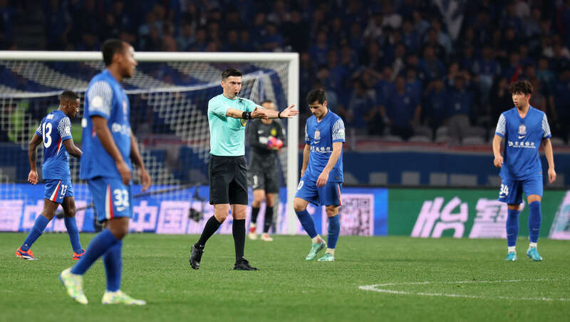 3月1日,上海体育场,2025中超联赛上海申花队对北京国安队的比赛中,主裁判买买提江吹响比赛结束哨后,申花队多名球员露出遗憾表情,一度2比1领先的申花队在补时阶段被国安队绝平。刘占崑/摄